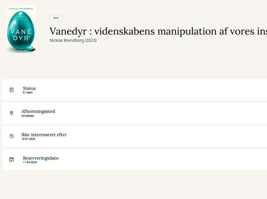 Bemærk: Materialer, du har bestilt fra andre biblioteker, kan ikke sættes på pause.